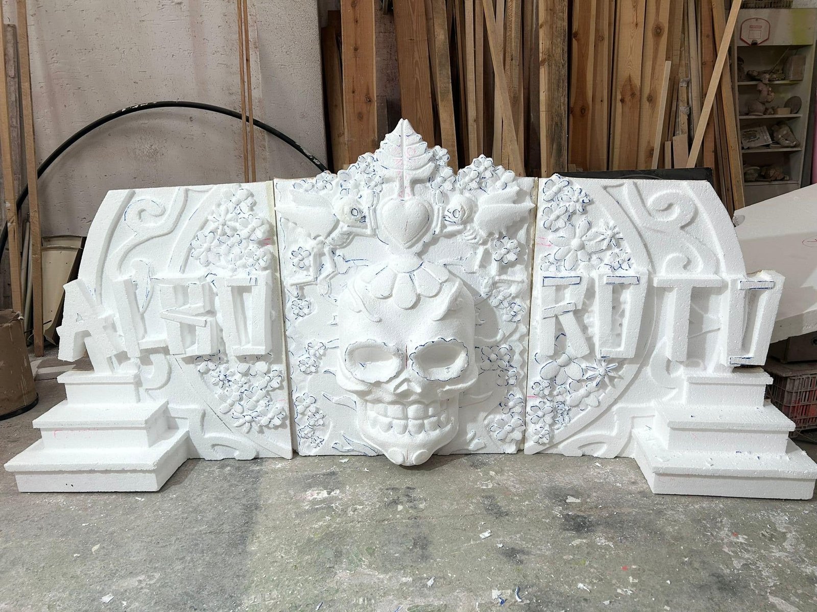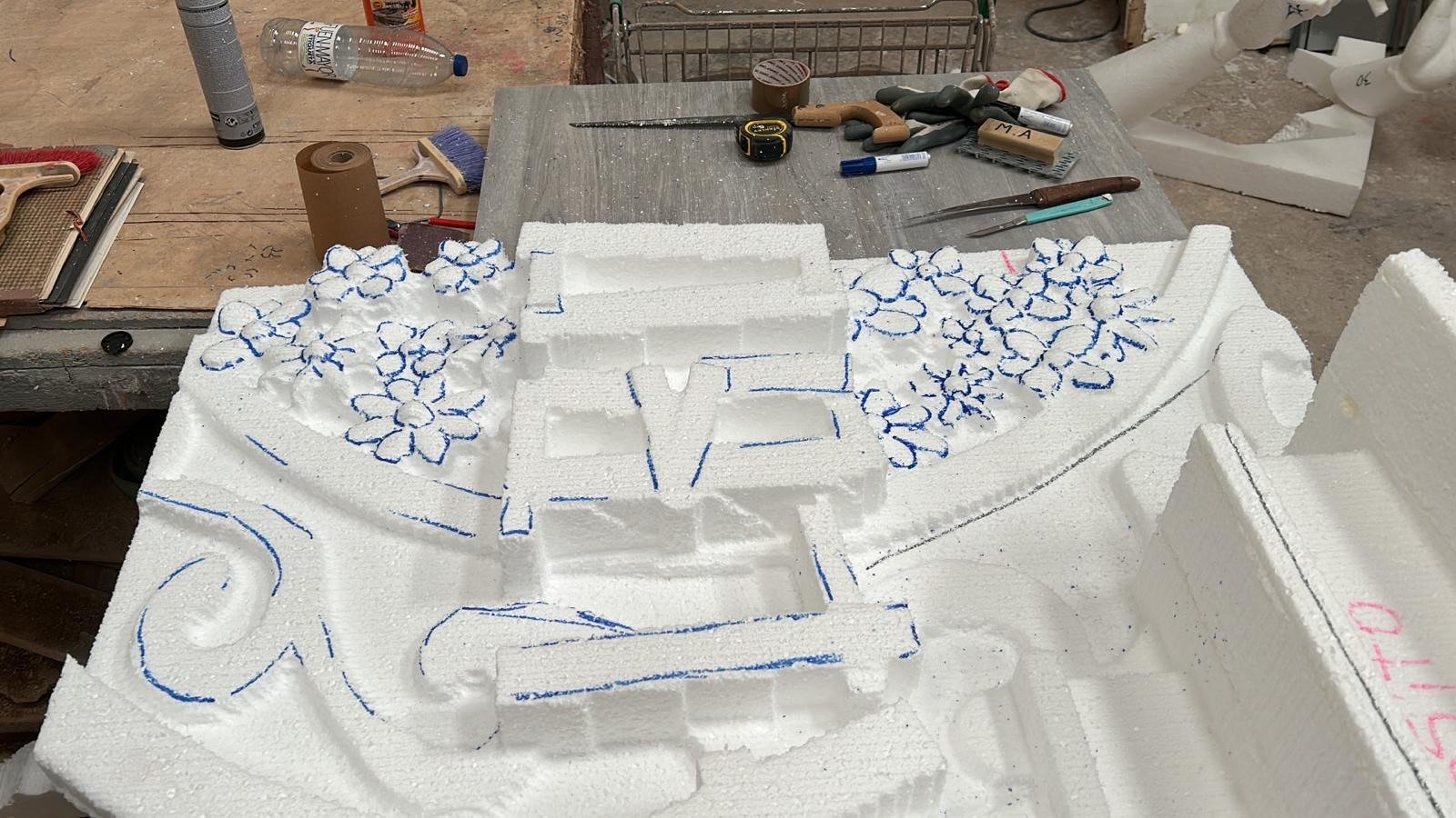 Para este proyecto realizamos un conjunto de tres piezas que forman una cabina de DJ y decoración escénica para la empresa de eventos Alboroto en Benidorm. El proceso comenzó con un diseño 3D personalizado, que una vez aprobado se trasladó a modelado en porexpan y recubrimiento en poliurea, un material resistente, ligero y fácil de transportar.