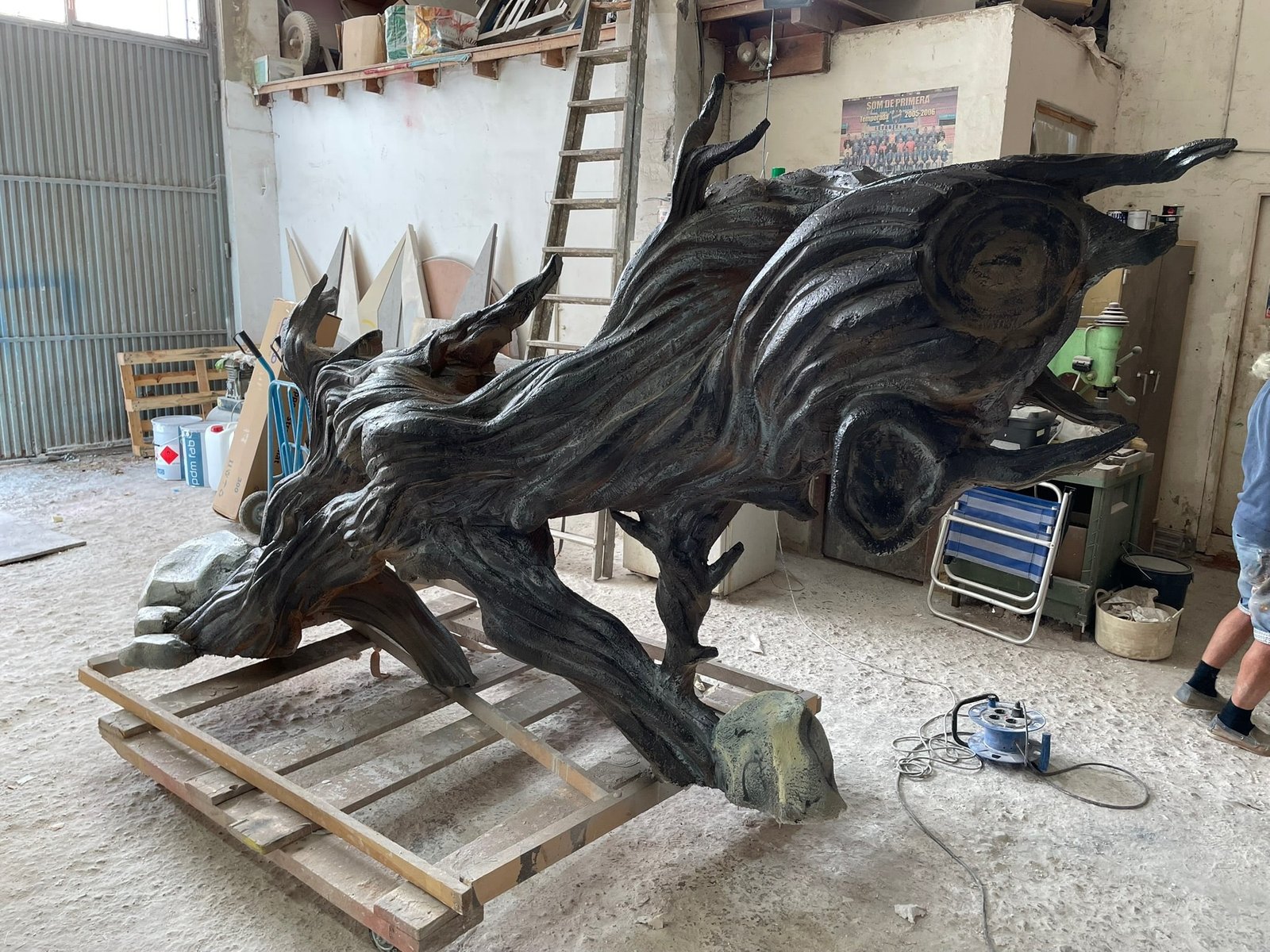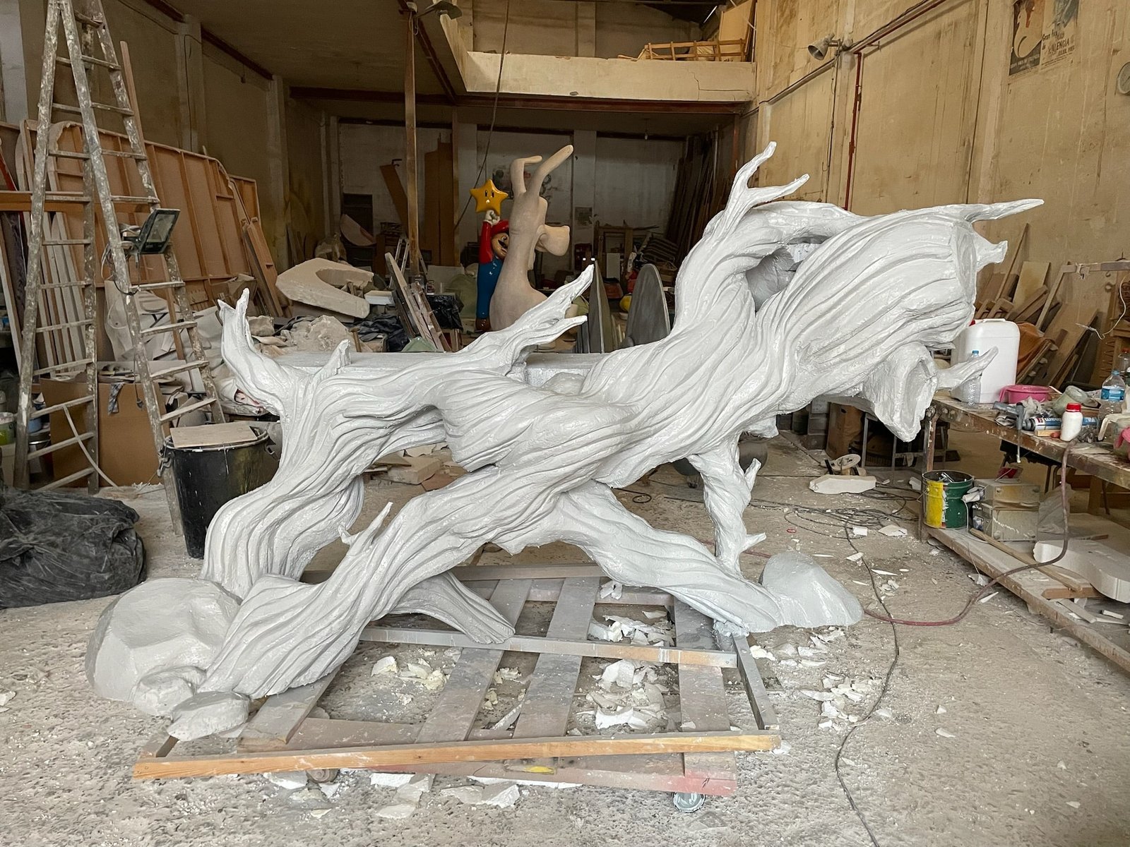 El punto fuerte fue la pintura a mano con efecto hiperrealista, realizada por uno de los mejores pintores de la ciudad fallera. Gracias a esto, el tronco parecía madera auténtica, pero con la ventaja de poder elegir exactamente la forma de las ramas y todos los detalles. El resultado final fue súper icónico y permitió que en la fiesta los asistentes tuvieran un elemento exactamente igual al de la serie.