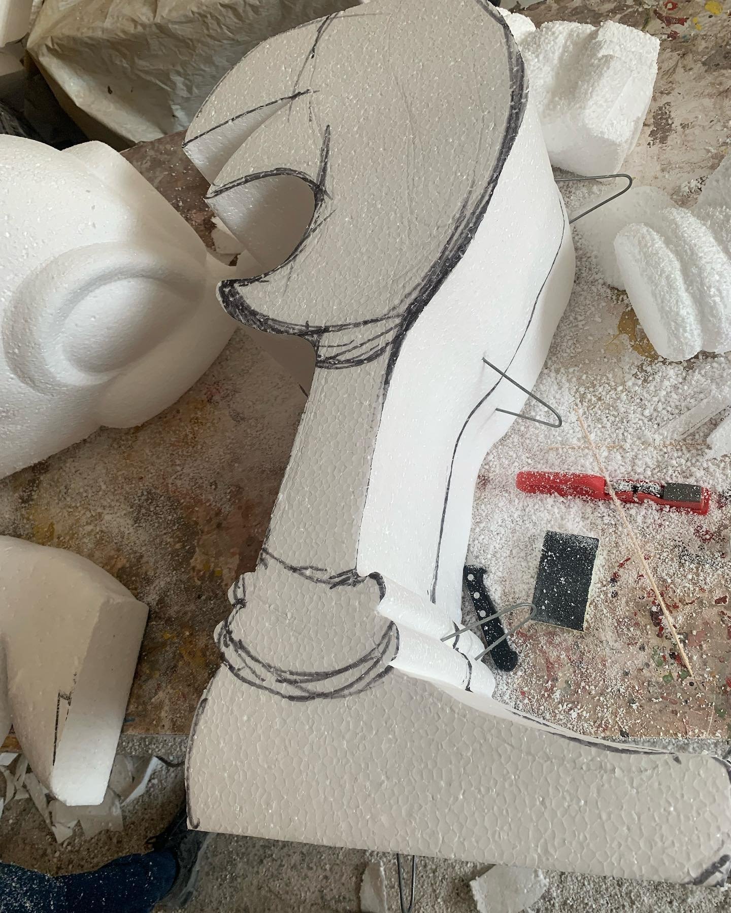 ⚪️Tallada completamente a mano en porexpan y terminada para interior.